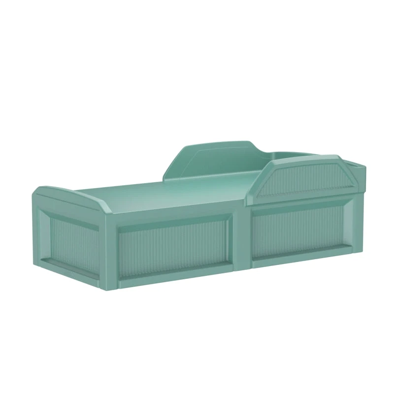 - Molded-in, raised head and footboard to prevent mattresses from sliding