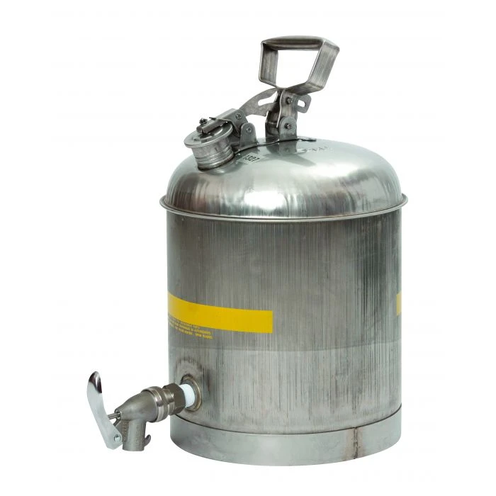 Eagle Faucet Safety Cans help control dispensing of flammable liquids into small capacity vessels with a variety of drip-free self-closing dispensing faucet styles. Galvanized Steel is ideal for flammable petroleum based products, while 316 Stainless Steel is recommended for use with most alcohols, ethers, aromatics, hydrocarbons and chlorinated hydrocarbon products. Usually ships within 4 business days.
