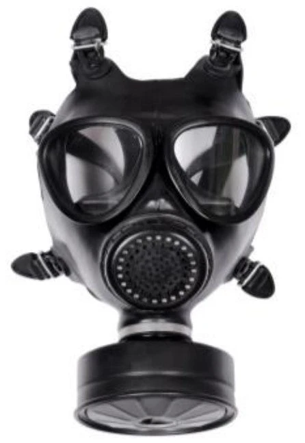 - Visual style – Full-face gas mask with 1 face window (clear transparent tone) to see