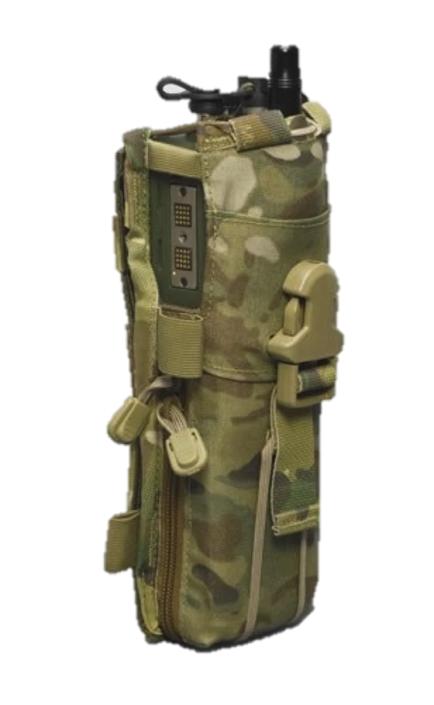 This Drop-Down PRC-152 Pouch embodies High Ground’s philosophy of “head up, eyes on the enemy”. Unlike all other drop down radio pouches, this one is designed to be opened and closed with only one hand so you can keep one hand on your weapon at all times. Not only that, but it gives you unlimited access to radio screen, buttons, and battery. Opening in the bottom is provided so you can change batteries on the fly without having to disconnect from cables and head-sets. Also, by routing cables through the cable retention points, you will prevent your radio from getting hung up on cables every time you want to view the screen.