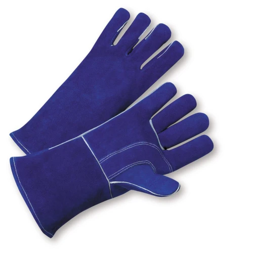 Premium blue split cowhide leather welder gloves provide excellent heat protection