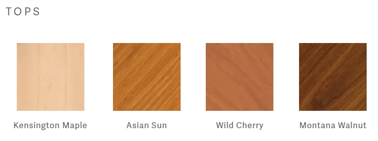 - Desk Top laminate colors: Wild Cherry, Kensington Maple, Asian Sun,