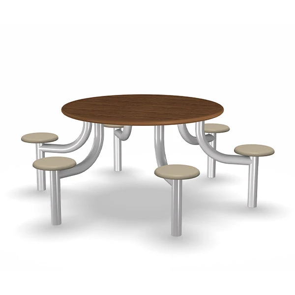 Engineered for superior strength and durability, Norix Max-Master tables are particularly well suited for dining halls and dayrooms where reliable performance is a must. Whether bolted to the floor or freestanding on adjustable glides, the distinctive individual seat/leg design of the Max-Master tables provides superior stability than traditional pedestal tables. Compression molded composite seats, premium table top and unique steel leg design deliver an exceptional table for continuous daily use in challenging environments. The unique leg design is the key to the form and function of this high-performance fixed seating.
