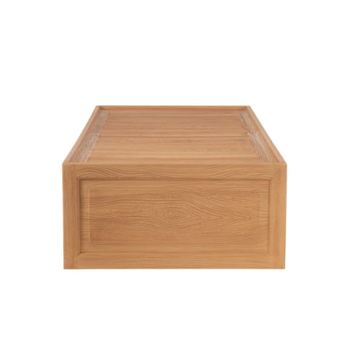 - Anti-ligature bed with wood grain appearance and inset panel design aesthetic creates a “classic” residential look yet allows placement flush against wall or in corners.
