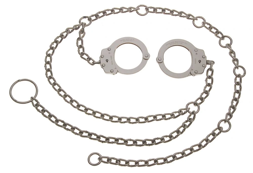 Peerless Model 7002C Waist Chain is designed for special security situations. The Model 7002C waist chain has one Model 700C handcuff positioned at each hip allowing for either parallel arm or cross arm handcuffing technique. The special heat-treated steel chain and padlock rings assure adjustment up to a 54-inch waist.