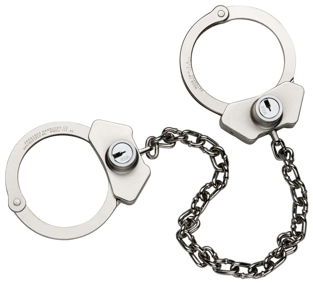 Peerless Handcuff Company has been committed to producing the finest restraints available since 1914, including chain link handcuffs, hinged handcuffs, leg irons, and waist and transport chains. Peerless offers a full range of metallic restraint products and accessories used by law enforcement, corrections facilities, police and sheriff’s departments, and military agencies throughout the US and abroad.