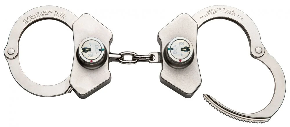 Peerless Handcuff Company has been committed to producing the finest restraints available since 1914, including chain link handcuffs, hinged handcuffs, leg irons, and waist and transport chains. Peerless offers a full range of metallic restraint products and accessories used by law enforcement, corrections facilities, police and sheriff’s departments, and military agencies throughout the US and abroad.