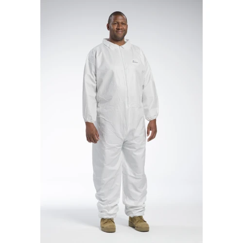 - Features microporous coverall, zipper front with collar and elastic wrist/ankle