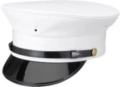 W. Alboum Comfort Fit 8 Point Police Cap With Long Visor – White With Black Brim