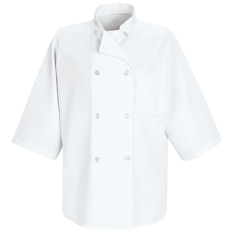 Red Kap’s Half-Sleeve Chef Coat has stain-resistant technology that releases food and grease during washing to keep your uniform looking new and clean. Have your favorite tools handy in the left chest pocket and button up with eight UV pearl buttons.