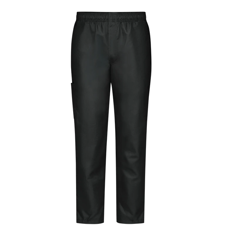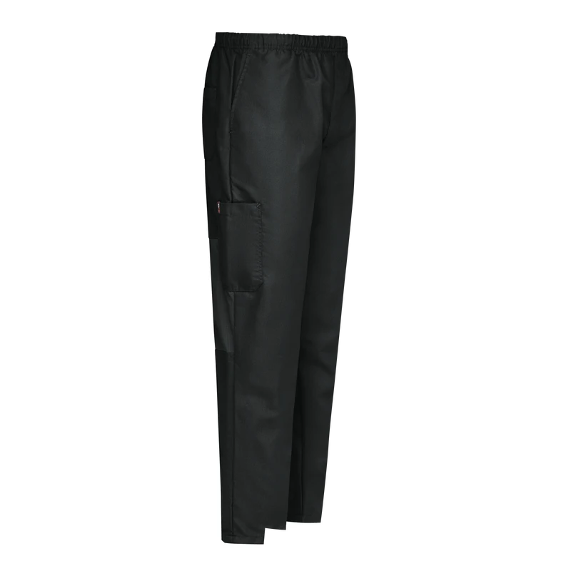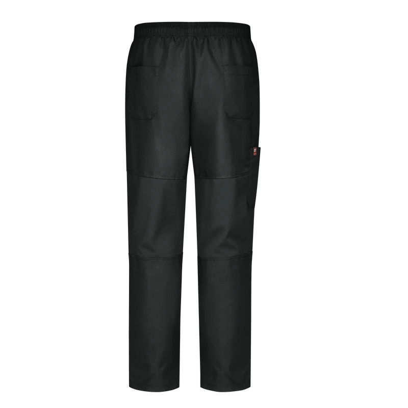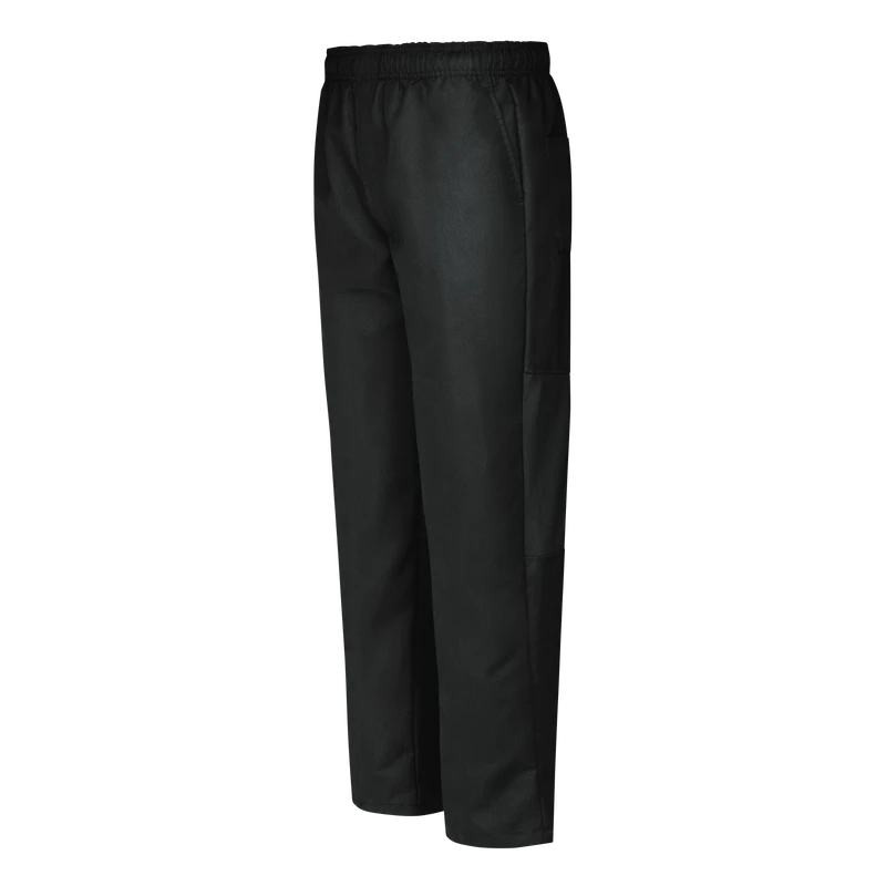 Stay cool and comfortable on the line in Red Kap’s Baggy Chef Pants for men. Perforated stretch panels at the waist and behind the knees help you keep you cool, while convenient pockets let you put things in their place. A straight fit through the leg and knee with slight tapering through the thigh provides a sophisticated look. And, the drawstring waistband with zipper fly wears comfortably all shift long. Plus, moisture wicking, soil releasing fabric provides a long-lasting professional image.