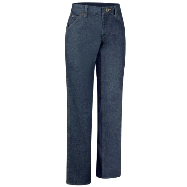 These women’s work jeans sit just below the natural waist and offer a slimmer, straight thigh and leg for a more flattering, feminine fit.