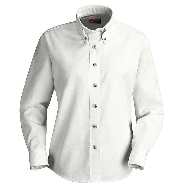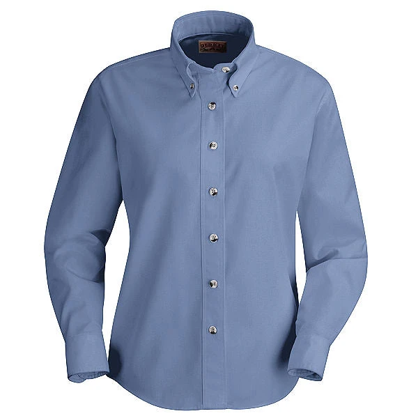 This Red Kap solid black Poplin Dress Shirt for women is designed with a box-pleated back, a two-piece collar, and a button-close front, this shirt is ready to keep you looking professional in the office. And thanks to the Touchtex finish, the shirt has enhanced soil release abilities, a durable press, and wickability that help keep it clean and ready to go day after day.