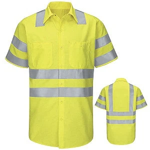 With additional reflective striping on the sleeves and body, Red Kap’s our Hi-Visibility Work Shirt kicks it up to high gear. Two button-thru chest pockets and a pencil stall protect your on-the-job tools, while 360° visibility and UPF 40 protect on-the-job you. ANSI/ISEA 107-2010 and ANSI/ISEA 107-2015 Class 3 Compliant.