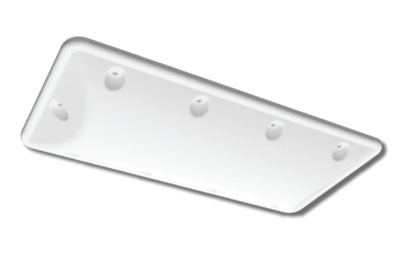 - Anchored flush onto ceiling with 10 spike anchors or optional recessed tamper-proof 1/4” stainless steel bolts or cinder block fasteners