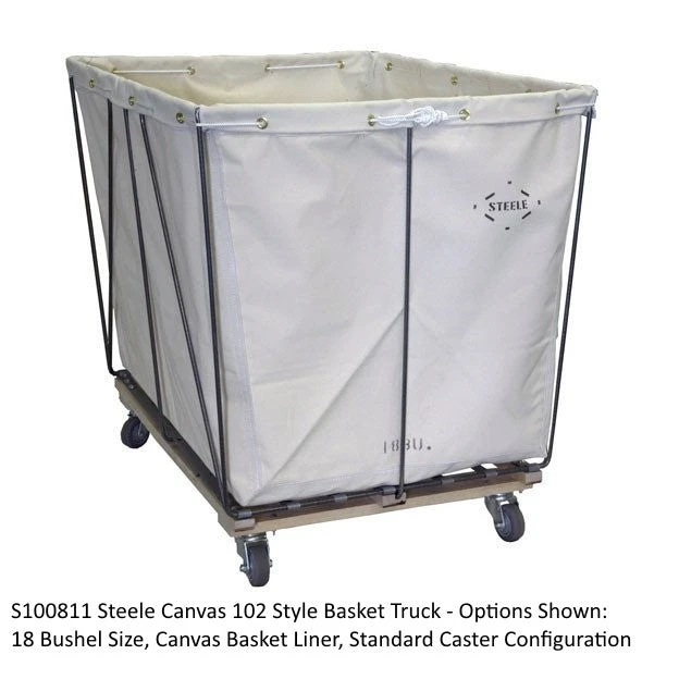 Steele Canvas Basket utility trucks, laundry baskets, laundry hampers, and storage bags are made from your choice of sturdy natural cotton canvas or waterproof anti-bacterial vinyl-coated nylon, available in many colors. Steele Canvas laundry trucks and laundry carts are used for hauling supplies or debris on work sites, material handling in manufacturing and recycling facilities, moving mail in post offices and corporate mailrooms, or moving laundry and other materials in hospitals, industrial laundries, correctional and detention facilities and other institutional environments.