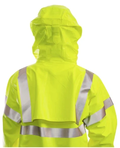 Tingley Eclipse raincoats offer Revolutionary Quad-Hazard protection: high visibility, liqui-proof, arc flash and flash fire protection. Thermo-Grid technology helps block out heat energy while the flame-resistant PVC coating on Nomex provides 100% liquid proof protection in a soft, lightweight coat.