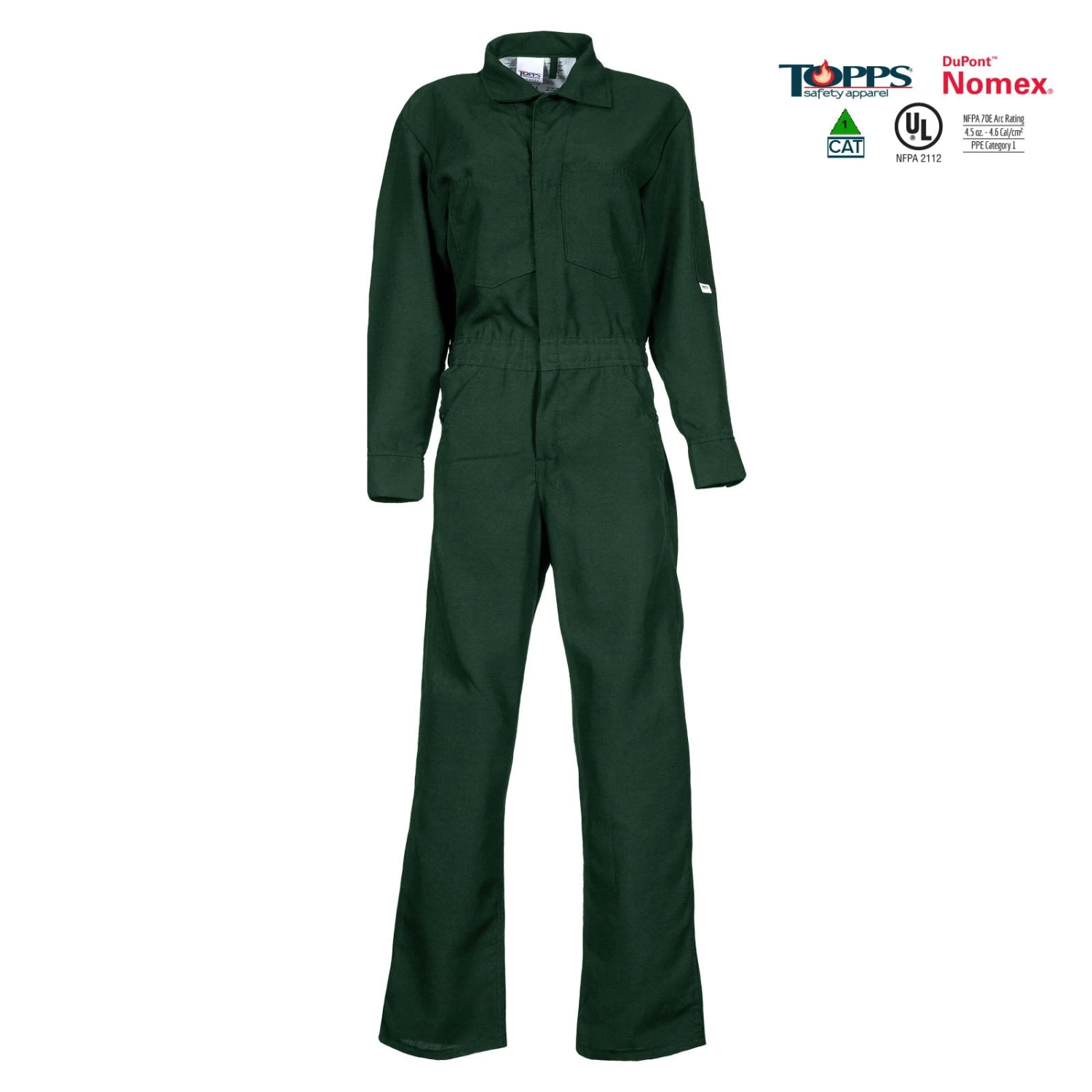 These durable FR Coveralls are flame resistant coveralls specifically designed to protect workers in the Industrial, Petro-Chemical, Energy, and Gas and Electric Utility industries. These FR coveralls are made from fabrics that have been tested and certified to comply to NFPA 2112, and have been tested to determine the NFPA 70E arc ratings (ATPV).