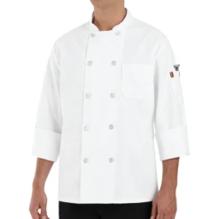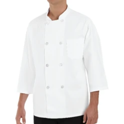 Red Kap 0413 White Chef Coat With Eight Pearl Buttons And Thermometer Pocket On Left Sleeve